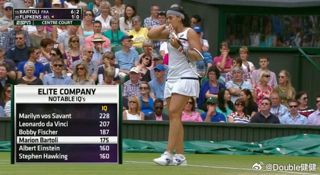 23岁的法国小将阿特玛纳(NO.136)曾透露自己检测过IQ(智商),为158+,属于有潜力的高智商人群,接近爱因斯坦的160。另一位法国选手、温网冠军巴托丽曾表示自己的智商是175。